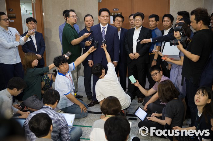 취재진에 둘러쌓인 송영길 의원
