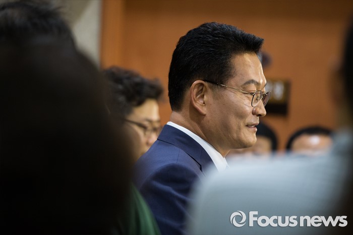 (서울=포커스뉴스) 송영길 더불어민주당 의원이 24일 오전 서울 여의도 국회 정론관에서 당대표 출마 기자회견을 마친 뒤 취재진 질문에 답하고 있다.