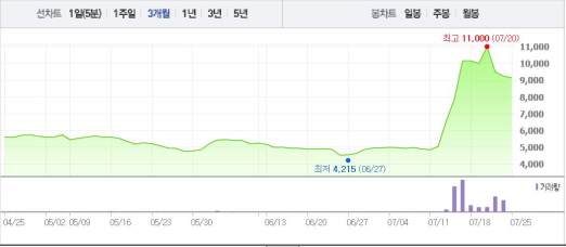 포켓몬 GO는 미국, 캐나다, 호주 등에 시범 출시된 상태며 현재 앱 매출 순위에서 최상위권에 올라갔다. 한국에서도 포켓몬 GO 열풍이 불고 있다. 한빛소프트는 쿠킹 오디션 VR, 헬게이트 VR 등 총 5가지의 VR 콘텐츠를 개발하고 있어 주목을 받았다.주가흐름<사진출처=네이버 캡쳐>