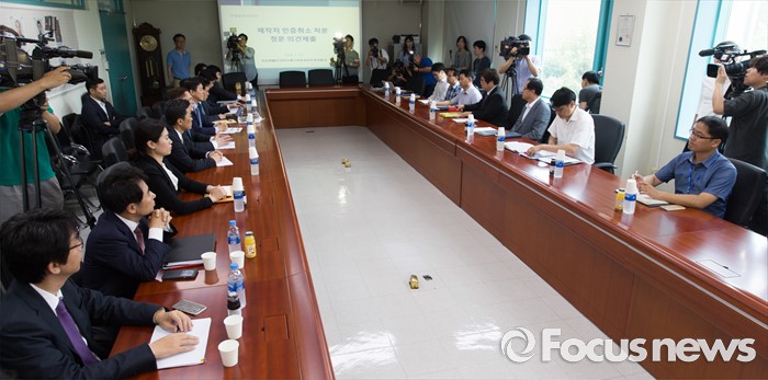 (인천=포커스뉴스) 요하네스 타머 아우디폭스바겐 사장을 비롯한 관계자들이 25일 오전 인천 서구 국립환경과학원에서 열린 차량 인증 조작 관련 환경부 청문회 시작을 기다리고 있다.