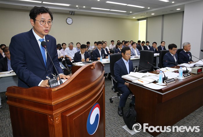 (세종=포커스뉴스) 25일 오전 세종시 정부세종청사 국회회의실에서 열린 환경부·고용노동부·국립환경과학원·안전보건공단에 대한 국회 가습기살균제 특조위 현장조사에서 이정섭 환경부 차관이 기관보고를 하고 있다.