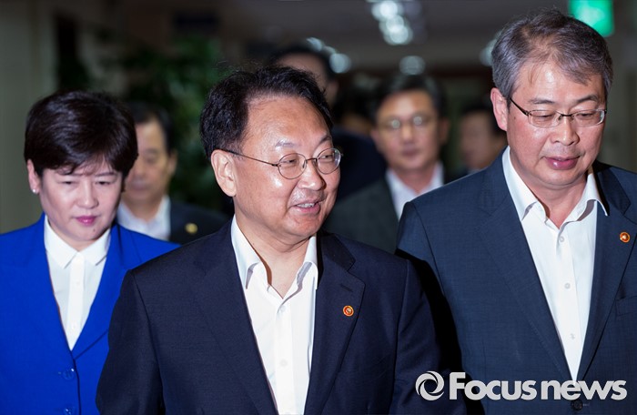 (서울=포커스뉴스) 26일 오전 정부서울청사에서 열린 국무회의에 유일호(맨 앞) 경제부총리 겸 기획재정부 장관을 비롯한 국무위원들이참석하고 있다.