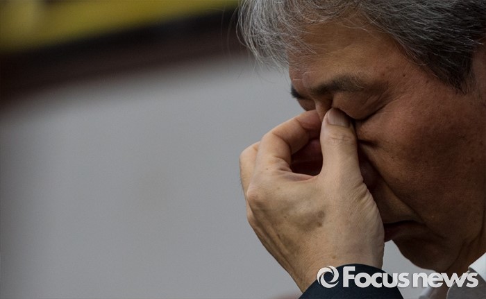 (서울=포커스뉴스) 26일 오전 정부서울청사에서 열린 국무회의에 참석한 임종룡 금융위원장이 얼굴을만지고 있다.