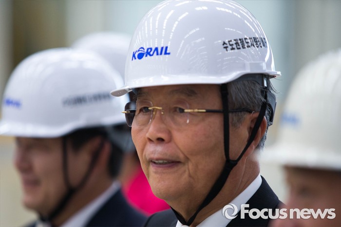 (고양=포커스뉴스) 김종인 더불어민주당 비대위 대표가 26일 오전 경기도 고양시에 위치한 수도권철도차량정비단을 방문, 안전모를 쓰고 정비기지 내부로 들어서고 있다.