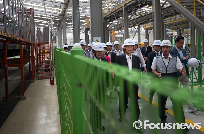 (고양=포커스뉴스) 김종인 더불어민주당 비대위 대표가 26일 오전 경기도 고양시에 위치한 수도권철도차량정비단을 방문, 정비기지를 둘러보고 있다.