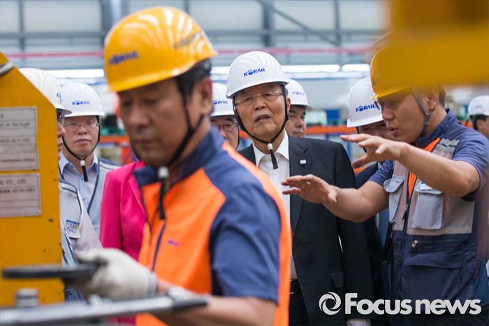 (고양=포커스뉴스) 김종인 더불어민주당 비대위 대표가 26일 오전 경기도 고양시에 위치한 수도권철도차량정비단을 방문, 관계자에게 설명을 듣고 있다.