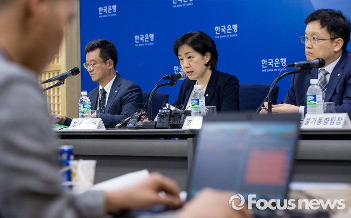 ▲ 교역 조건 악화 때문에 실질 GDI가 줄었다. 전분기 GDI 증가율(3.0%)이 조금 높았다는 점도 감안해야 한다. 이는 국제유가가 전분기 기준으로 상승하고 반도체 가격도 낮아진 영향을 받았다. 전년 동기 대비로는 4.4% 늘어났다. 이는 전년 동기 대비 실질 GDP 성장률보다 높은 수준이다. 전반적으로 실질 GDI는 견실한 수준이라고 볼 수 있다.(서울=포커스뉴스) 서영경 한국은행 부총재보가 14일 오후 서울 중구 한국은행에서 2016년 하반기 경제전망에 대해 설명하고 있다. 2016.07.14 양지웅 기자
