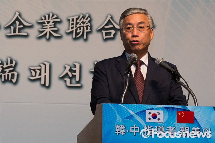 (서울=포커스뉴스) 추궈홍 주한중국대사가 26일 오후 서울 중구 롯데호텔에서 열린 '한중 지도자 친선의 밤' 행사에서 참석해 축사를 하고 있다.