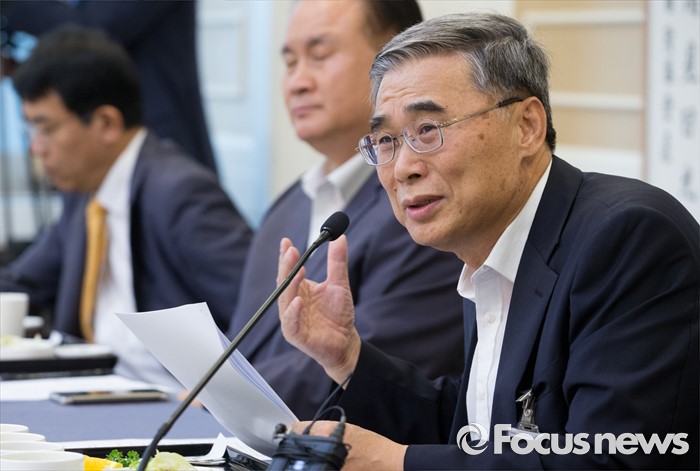 (서울=포커스뉴스) 27일 오전 서울 여의도 국회 귀빈식당에서 야3당 소속 의원들 주최로 열린 사드사태와 그 대응전략 간담회에 참석한 이종석 전 통일부 장관이 발언하고 있다.