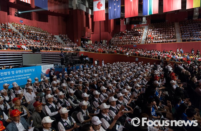 (서울=포커스뉴스) 27일 오전 서울 송파구 올림픽공원 올림픽홀에서 정전협정 63주년 및 유엔군 참전의 날 기념식이 열리고 있다. 1953년 7월 27일은 정전협정이 체결된 날로, 정부는 해마다 이를 기념하는 행사를 열어왔다