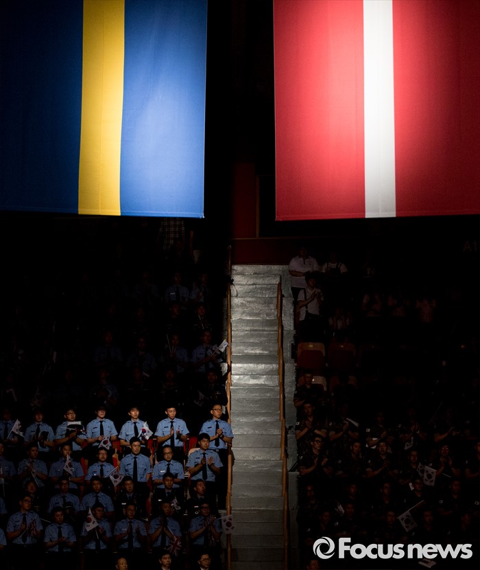 (서울=포커스뉴스) 27일 오전 서울 송파구 올림픽공원 올림픽홀에서 열린 정전협정 63주년 및 유엔군 참전의 날 기념식에서 장병들이 입장하는 6·25 전쟁 유엔군 참전용사들에게 박수를 보내고 있다.