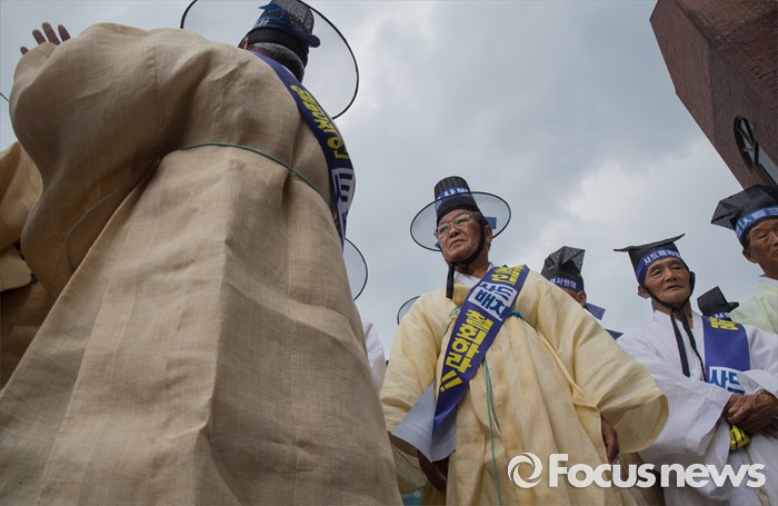 (서울=포커스뉴스) 27일 오전 서울 종로구 청운효자동 주민자치센터 앞에서 성주 유림단체 회원들이 '사드 배치 반대 기자회견'에 참석하기 위해 발걸음을 옮기고 있다.