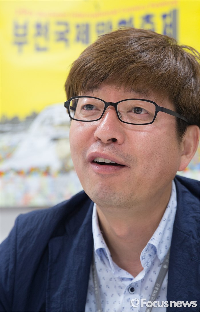 (부천=포커스뉴스) 27일 오후 경기도 부천시 한국만화박물관에서 오재록 한국만화영상진흥원장이 인터뷰를 하고 있다.