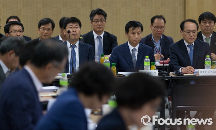 (분당=포커스뉴스) 27일 오후 경기도 성남 분당구 SK케미칼 본사에서 열린 가습기살균제 사고 진상규명과 피해구제 및 재발방지 대책마련을 위한 국정조사특별위원회 현장조사에서 김철(앞줄 오른쪽두번째) SK케미칼 대표이사가 우원식 위원장의 발언을 경청하고 있다.