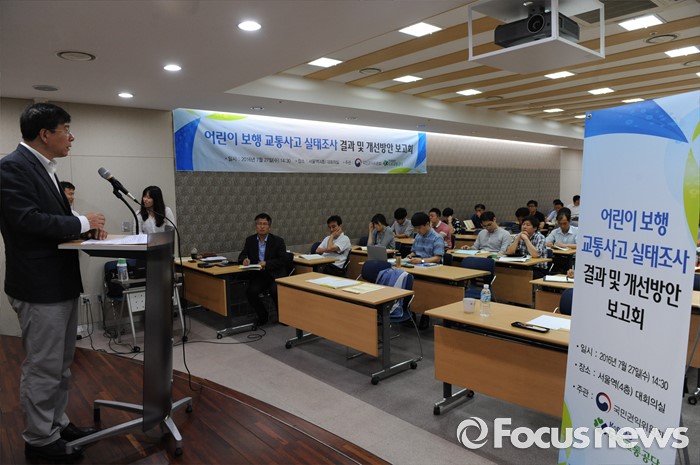 (서울=포커스뉴스) 27일 오후 서울 용산구 서울역 대회의실에서 열린 어린이 보행 교통사고 개선대책 보고회에 국민권익위원회 관계자가 시설개선과 정책추진에 대해 보고하고 있다.