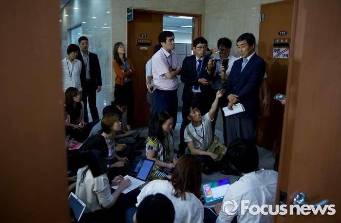 | △ 취재진 앞에 선 이종걸 |