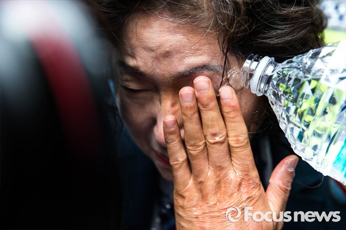 | △ 활동가들이 뿌린 캡사이신 닦아내는 김태현 이사장 |