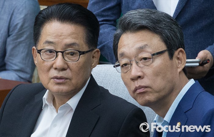 (서울=포커스뉴스) 28일 오후 서울 여의도 국회에서 열린 국민의당 비공개 의원총회에 참석한 박지원(왼쪽) 비상대책위원장과 김성식 정책위의장 등이 논의하고 있다. 검찰은 이날 김수민, 박선숙, 박준영 의원에 대한 영장 재청구를 신청했다.