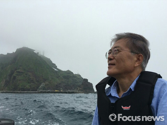 이번 여론조사는 전화면접, 스마트폰앱, 자동응답 혼용 방식으로 실시됐다. 응답률은 8.4%이고 표본오차는 95% 신뢰수준에 ±2.5%p다. 자세한 조사개요와 결과는 중앙선거여론조사공정심의위원회 홈페이지(www.nesdc.go.kr) 참조.문재인 더불어민주당 전 대표가 광복절을 앞두고 25일 독도를 방문, 보트에 올라 둘러보고 있다. <사진제공=문재인 전 대표측> 2016.07.25 포커스포토