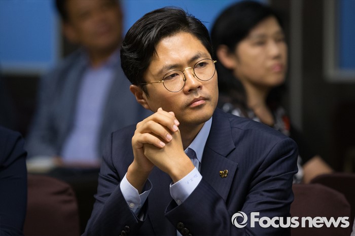 (서울=포커스뉴스) 김광진 더불어민주당 전 의원이 28일 오후 서울 성동구 레노스블랑쉬 웨딩홀에서 열린 서울 중구·성동갑 지역대의원대회에 참석하고 있다.
