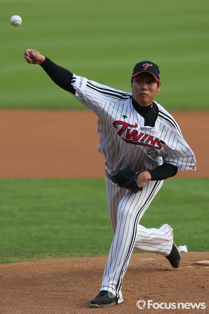 (서울=포커스뉴스) 28일 오후 서울 잠실구장에서 열린 2016 타이어뱅크 KBO리그 롯데-LG 경기에서 1회초 LG 선발투수 류제국이 투구하고 있다.