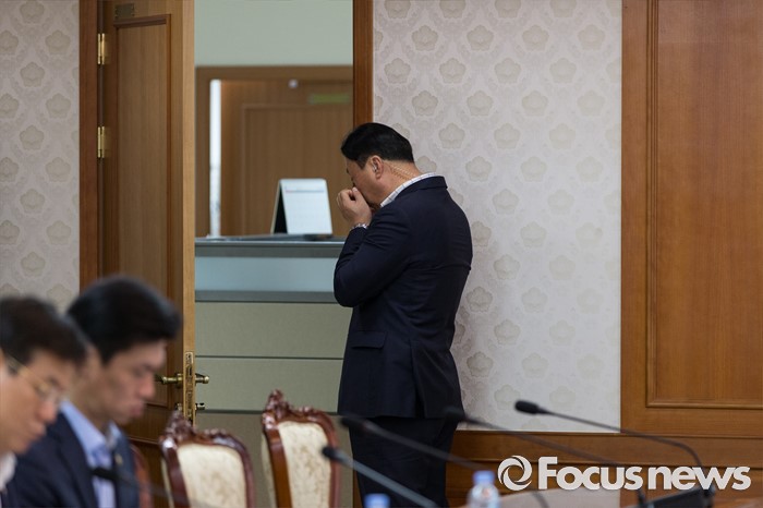 (서울=포커스뉴스) 29일 오전 서울 종로구 정부서울청사에서 열린 국가정책조정회의에 참석자들이 황교안 총리를 기다리고 있다.