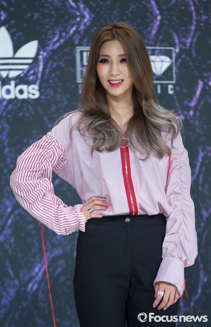 (서울=포커스뉴스) 29일 오전 서울 영등포구 타임스퀘어 아모리스홀에서 열린 Mnet '언프리티 랩스타 3' 제작발표회에 참석한 래퍼 자이언트 핑크가 포토타임을 갖고 있다.