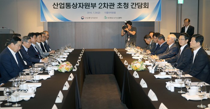 (서울=포커스뉴스) 우태희 산업통상자원부 2차관이 29일 서울 중구 소공동 플라자호텔 메이플룸에서 구자철 도시가스협회장, 유승배 서울도시가스 사장, 강병일 삼천리 대표, 나성오 강원도시가스 사장, 김병표 중부도시가스 사장, 태재광 전남도시가스 사장, 김문수 제주도시가스 사장을 비롯한 도시가스사 대표, 협회, 가스공사 등 관계자 50여명이 참석한 가운데 열린 도시가스사 사장단 간담회에 참석하고 있다. <사진제공=산업통상자원부>