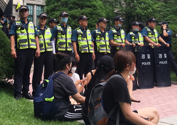 이대 학생들과 대치하는 경찰
