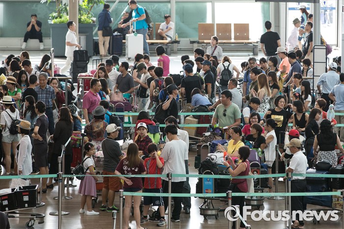 (인천공항=포커스뉴스) 본격적인 휴가철을 맞은 31일 오전 인천국제공항 출국장이 여행객들로 붐비고 있다. 인천국제공항은 지난 30일 총 19만 3420명의 이용객들이 공항을 이용해 이용객수 1위를 갱신했다.