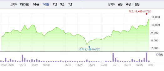 홈캐스트는 1일 오전 9시11분 현재 전 거래일 대비 8.37%(830원) 상승한 1만750원에 거래되고 있다. 홈캐스트는 7월29일에도 1.12%의 상승폭을 기록했다.
