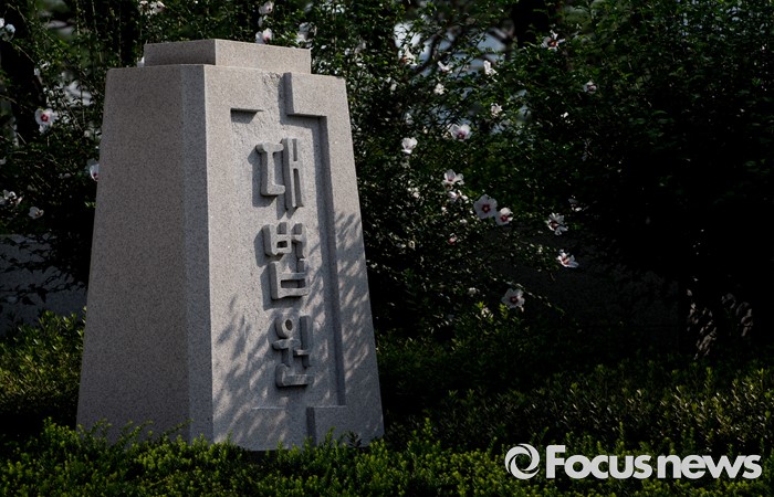 (서울=포커스뉴스) 현직 부장판사가 오피스텔 성매매 혐의로 현장에서 적발돼 파문이 이는 가운데 4일 오전 서울 서초구 대법원 표시석에 그림자가 드리워 있다.
