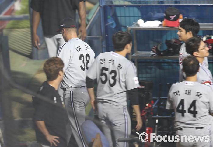 (서울=포커스뉴스) 2일 오후 서울 잠실구장에서 열린 2016 프로야구 LG-두산 경기 3회말 제구력에 난조를 보인 LG 트윈스 허프가 조기 강판을 당하고 있다.