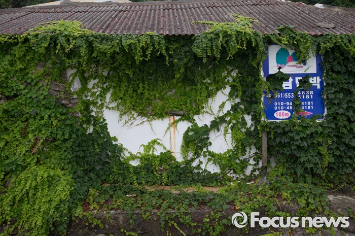 (여서도=포커스뉴스) 여서도 마을의 담장을 점령한 담쟁이 등 덩쿨식물이 그림처럼 펼쳐있다.