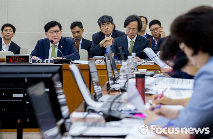 (서울=포커스뉴스) 3일 오전 서울 여의도 국회에서 추경예산 심사를 위해 열린 보건복지위원회 전체회의에 참석한 정진엽(왼쪽) 보건복지부 장관과 정기석 질병관리본부장이 의원들의 질의를 듣고 있다.