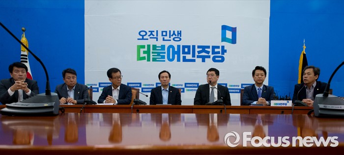 (서울=포커스뉴스) 4일 오전 서울 여의도 국회에서 더불어민주당 사드대책위원회의가 우상호(오른쪽 네번째) 원내대표 주재로 열리고 있다.