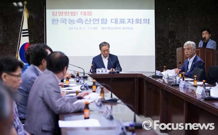 (서울=포커스뉴스) 한국농축산연합회 대표자들이 1일 오전 서울 서초구 제 2축산회관에서 김영란법 대응에 관련된 회의를 하고 있다.