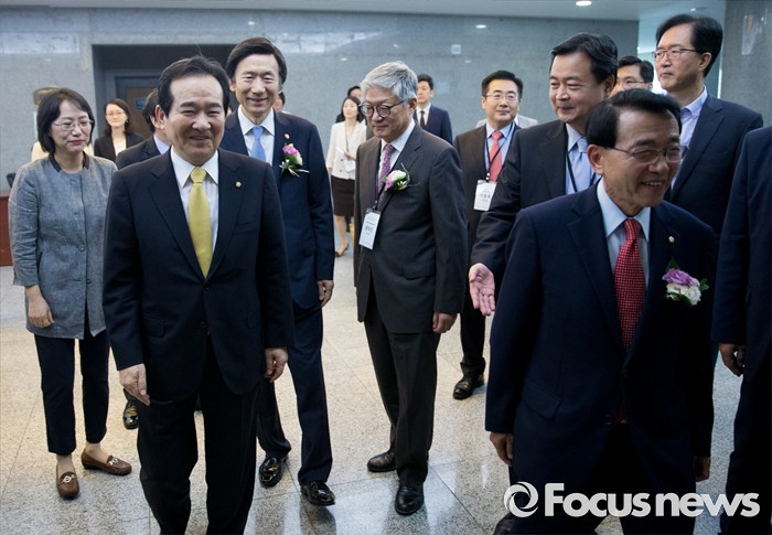 (서울=포커스뉴스) 3일 오전 서울 여의도 국회 의원회관에서 열린 공공외교법 발효기념 심포지엄에 정세균 국회의장, 윤병세 외교부 장관, 심재권 국회 외교통일위원장 등이 참석하고 있다.