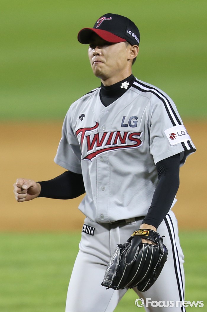 | △ 주먹쥐는 LG 마무리투수 임정우 |