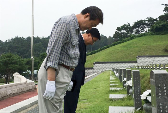 (서울=포커스뉴스) 전국 민생투어 중인 김무성 새누리당 전 대표가 3일 오전 광주 국립5·18민주묘지를 방문해 열사 묘역을 참배하고 있다. <사진제공=김무성 전 대표 페이스북>
