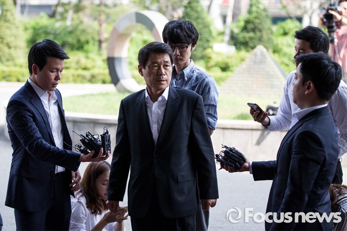 (서울=포커스뉴스) 보좌관의 월급을 빼돌려 정치자금으로 사용한 혐의를 받고 있는 이군현 새누리당 의원이 피의자 신분으로 4일 오전 서울 양천구 서울남부지방검찰청으로 들어서기 전 취재진의 질문을 받고 있다.