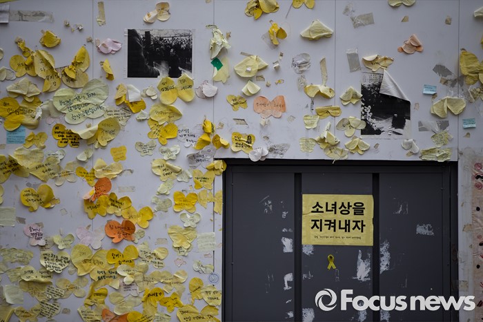 (서울=포커스뉴스) 3일 오후 서울 종로구 구 일본대사관 앞에서 '제1242차 일본군 위안부 문제해결을 위한 정기 수요집회'가 열리고 있다.