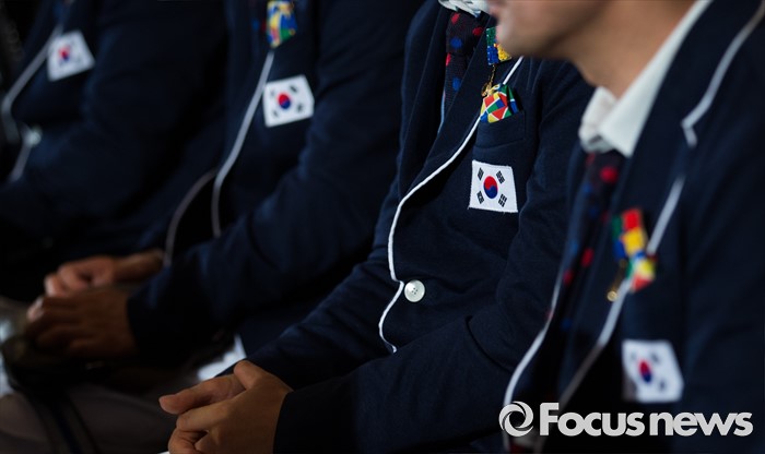 (서울=포커스뉴스) 2일 오후 서울 송파구 올림픽파크텔에서 열린 2016 리우 패럴림픽 대한민국 선수단 결단식에 참석한 선수단의 가슴에 태극기가 새겨져 있다.