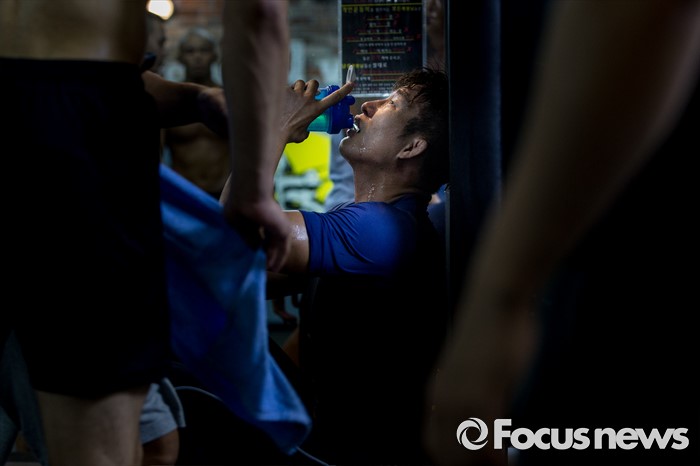 (서울=포커스뉴스) 오는 21일(한국시각) 미국 라스베이거스 T-모바일 아레나에서 개최되는 UFC-202에 출전해 러시아 출신 술탄 알리예프를 상대로 웰터급 경기가 예정된 임현규가 3일 오후 서울 서대문구 TAP복싱 & 레슬링에서 레슬링 훈련을 마친 뒤 물 마시고 있다.