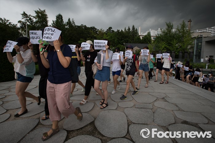 (서울=포커스뉴스) 2일 오후 서울 서대문구 이화여대에서 미래라이프 대학 설립에 반대하는 이화여자대학교 학생들이 교내를 행진하며 시위하고 있다.
