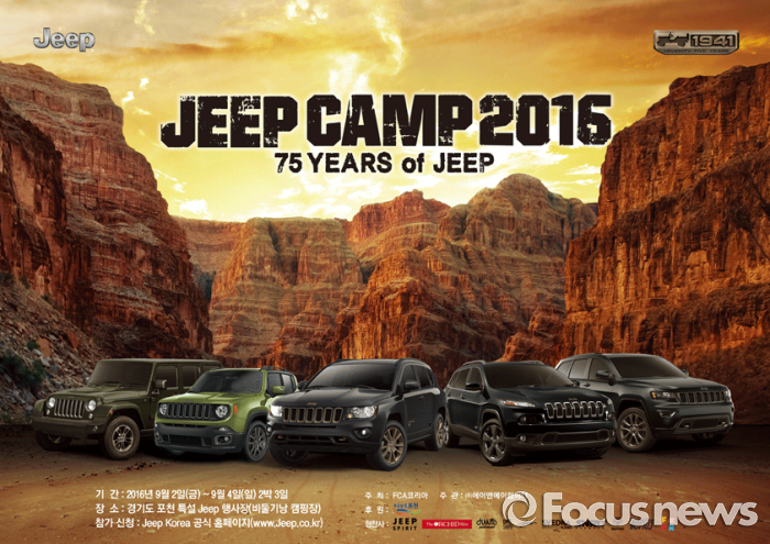 (서울=포커스뉴스) FCA 코리아는 오는 9월 2일부터 4일까지 3일간 경기도 포천시 지장산 비둘기낭 캠핑장 일대에서 오프로드 드라이빙 축제 '지프 캠프 2016'을 연다고 2일 밝혔다.