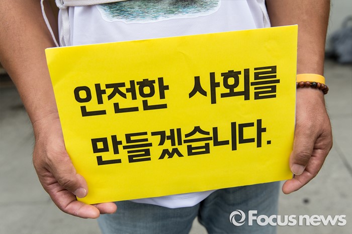 (서울=포커스뉴스) 2일 오전 서울 종로구 광화문광장에서 지하철 비정규직 사망재해 해결과 안전사회를 위한 시민대책위원회가 세월호 특조위 동조단식 돌입 기자회견을 하고 있다.