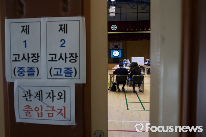 (서울=포커스뉴스) 3일 오전 서울 종로구 경운학교에서 열린 '2016년 초·중·고졸 학력인정 제2회 검정고시'에 응시자들이 시험을 치르고 있다.