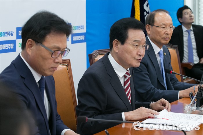 (서울=포커스뉴스) 변재일 더불어민주당 정책위의장이 2일 오전 서울 여의도 국회에서 세법개정안 관련 기자간담회를 하고 있다. 왼쪽부터 박광온 기획재정위원회 간사, 변 정책위의장, 최운열 정책위부의장.