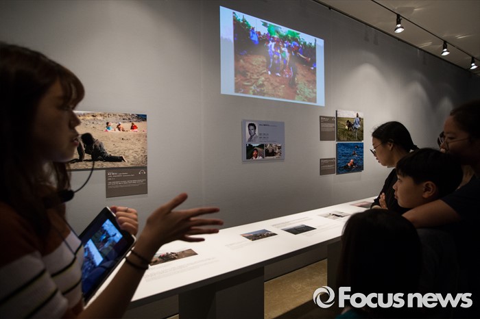 | △ 로이터 사진전, 작품 설명하는 도슨트 |
